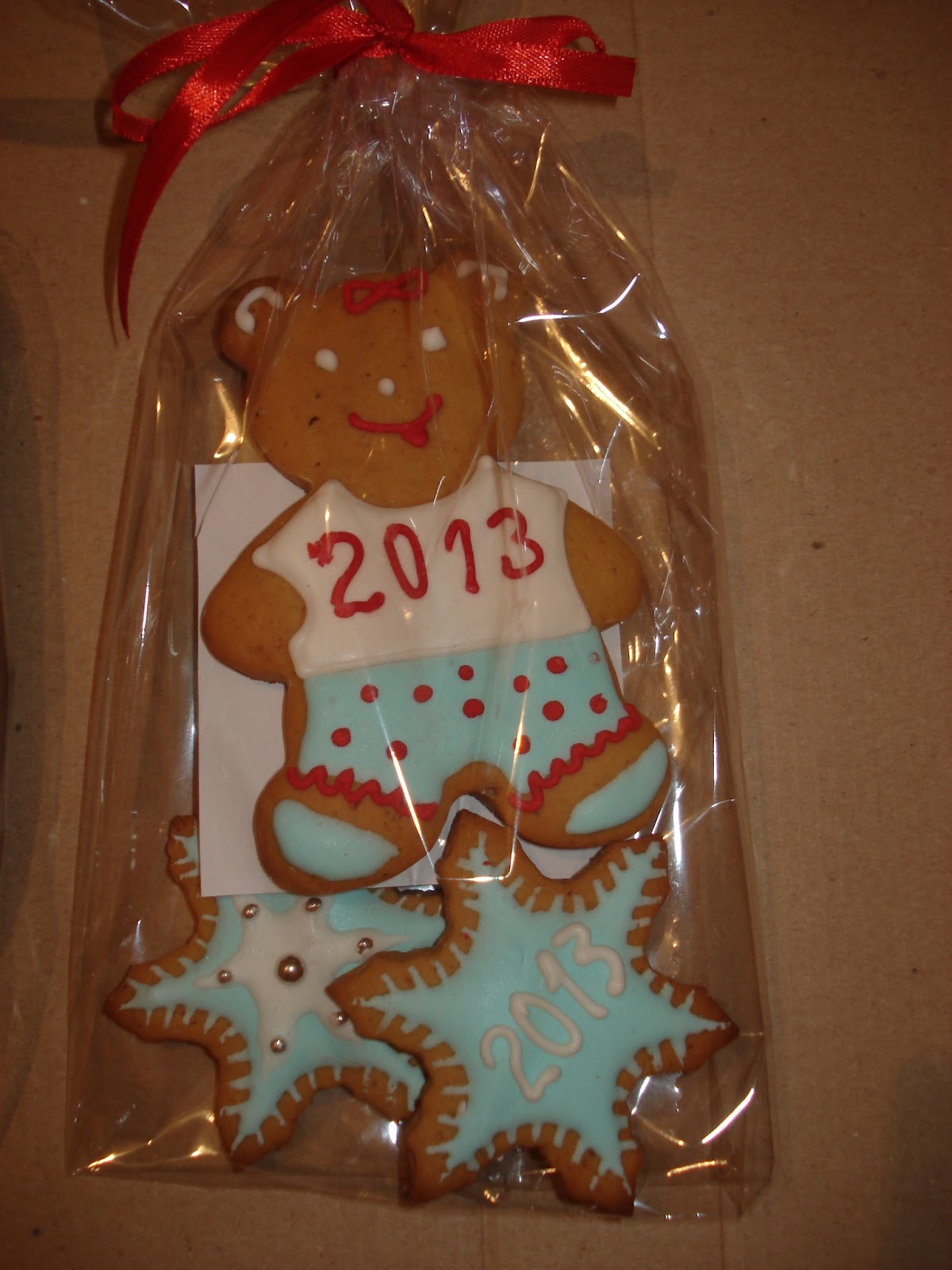 Эти прянички сегодня поедут в Москву к одной приятной женщине, у которой в начале декабря родился внук. Так что большой пряник в виде запеленанного ребеночка- это к рождению внука, остальные- к новогодним праздникам деткам и взрослым. К сердечкам привязаны сверточки с предсказаниями ( все хорошие!) .